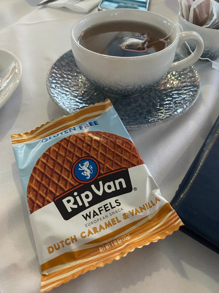 We made a gluten-free request during booking; however, if you have done this you know that there are times when you show up and there are not options available or what is available is less than you were expecting. My daughter sent me some gluten-free stroop waffles so I packed a few to take with me just in case. I was shocked when the waitress brought my very own tea tower with all gluten-free options. Yes, I was squealing with joy! It was so lovely to full take part in the tea service.